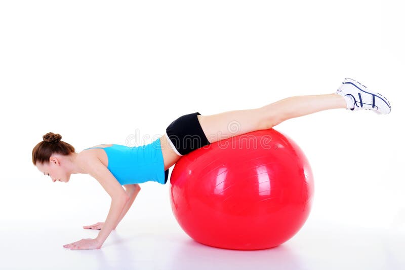 Fare Ginnastica Con Fitball Immagine Stock Immagine Di Fisico Sano