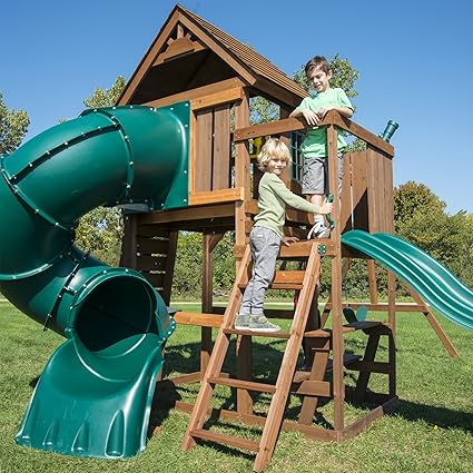 Swing N Slide Tremont Tower Play Set With Two Slides And Swings Glider Picnic Table Telescope And Climbing Wall Outdoor Play Amazon Canada