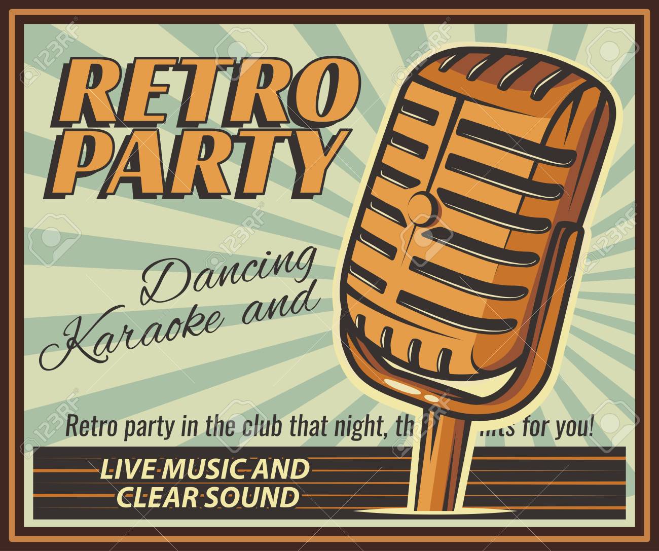 Vettoriale Il Poster In Stile Vintage Su Un Banner Pubblicitario Retro Invito Volantino Pubblicita Illustrazione Vettoriale Di Disco Retro E Danza Vecchio Microfono Altre Varianti Che Potete Trovare Nel Mio Portafoglio