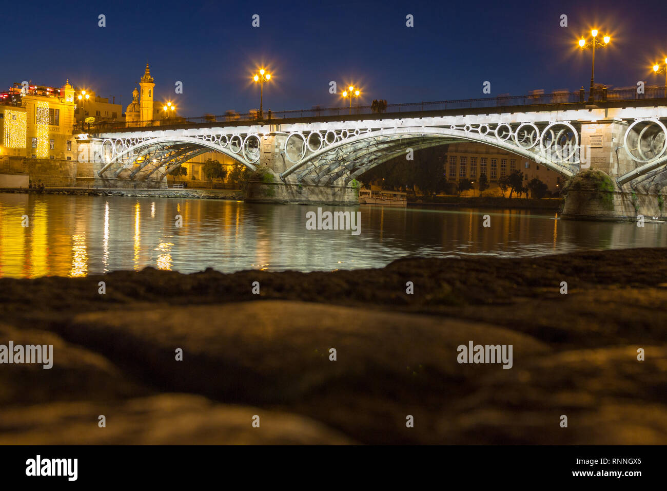 Puente De Triana Traduzione Inglese Ponte Triana Con Riflessi Nel Fiume Guadalquivir Durante Ore Blu Foto Stock Alamy