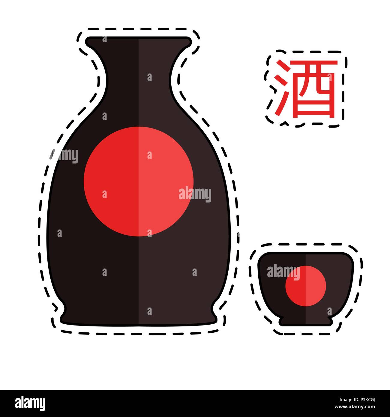 Etichetta Della Bottiglia Di Sake Piccola Tazza Di Sake Isolati Su Sfondo Bianco Illustrazione Vettoriale Design Piatto Traduzione Hieroglyph Sake Immagine E Vettoriale Alamy