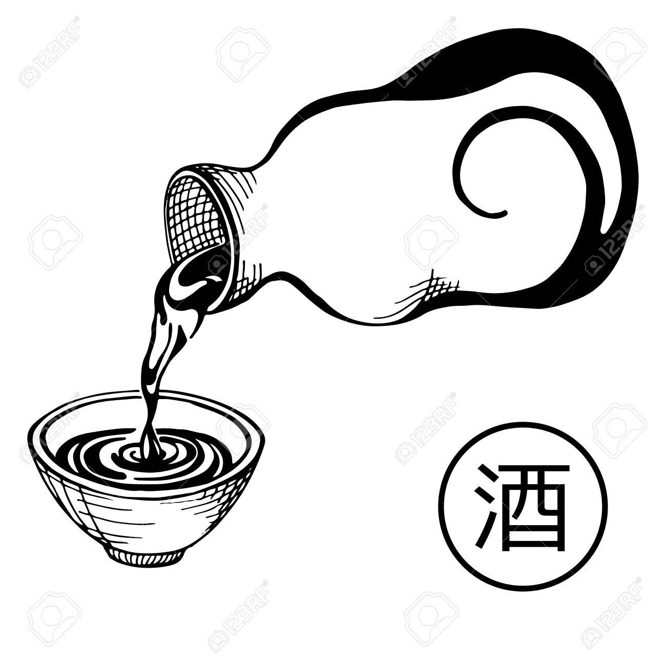 Motivi In Gres Sono Versate In Tazza Di Pietra Disegnato A Mano Bottiglia Di Sake Isolati Su Sfondo Bianco Traduzione Hieroglyph Sake Illustrazione Vettoriale Immagine E Vettoriale Alamy