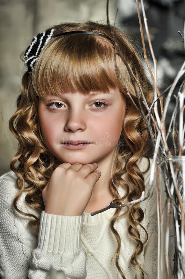Bambina Con Riccioli Biondi Cercando Foto Stock Alamy