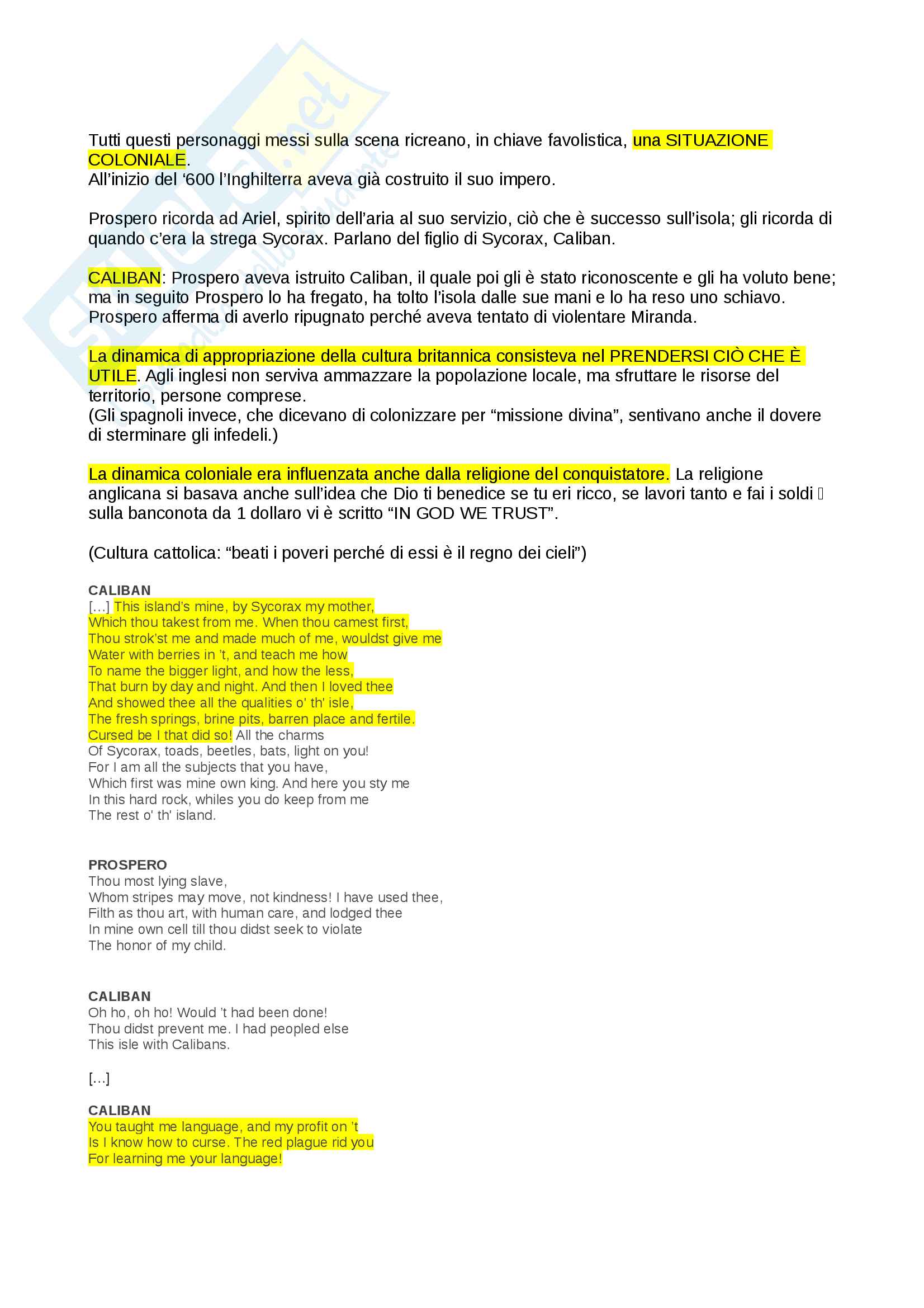 Appunti Per Esame Di Letteratura Inglese