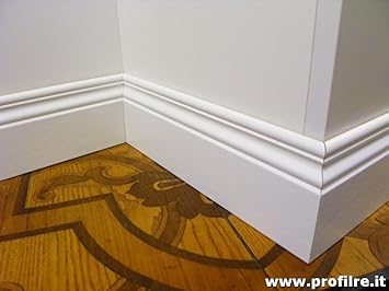 Battiscopa Mdf Bianco Ducale Inglese Altezza 13 Centimetri Spessore 14 Mm