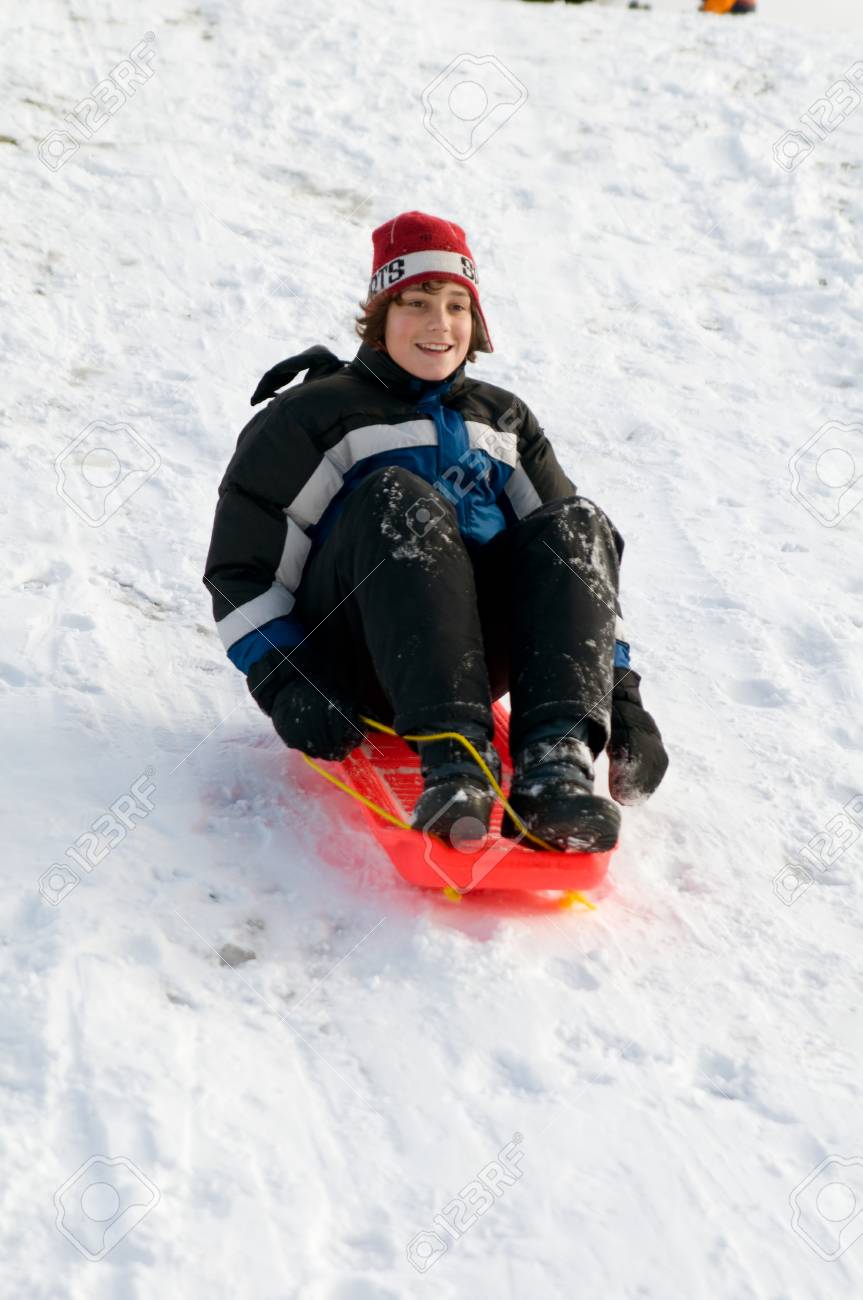 Garcon Luge En Hiver Banque D Images Et Photos Libres De Droits Image