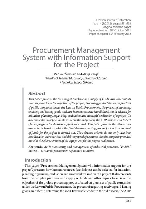 Pdf Procurement Management System With Information Support For The Project Doc Dr Sc Matija Varga And Vladimir Simovic Academia Edu