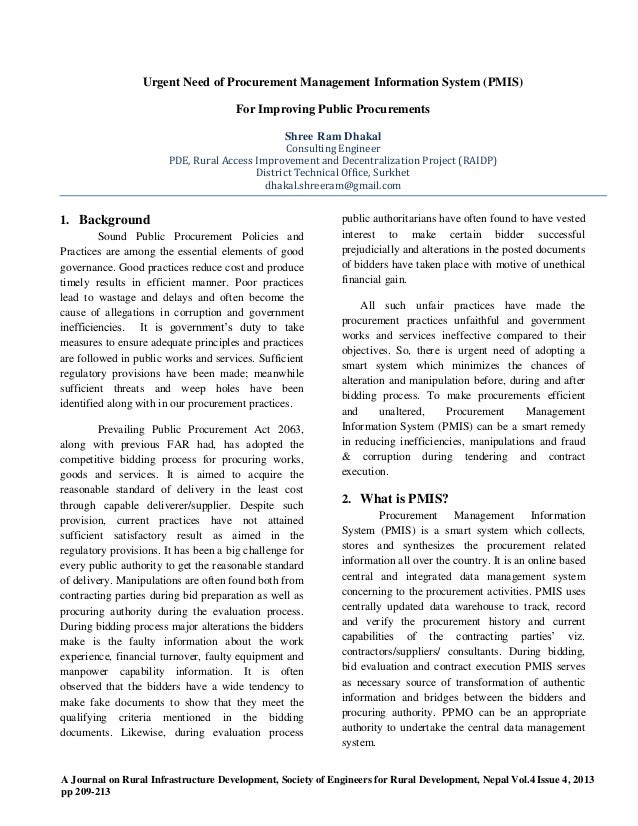 Procurement Management Information System Pmis For Improving Public