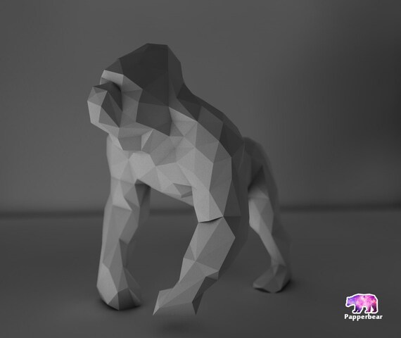 Low Poly Gorilla Monkey Porpoising Model Printable Diy Pdf Etsy