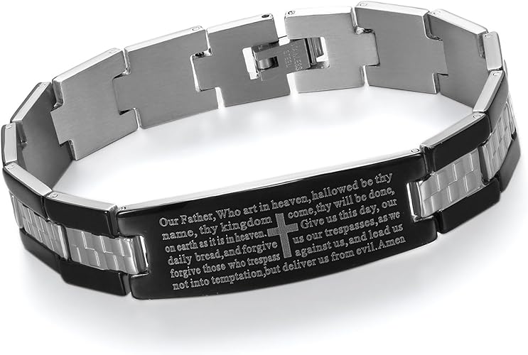 Cupimatch Bracciale Da Uomo In Acciaio Inox Con Incisa La Preghiera Del Padre Nostro In Lingua Inglese Di Colore Nero E Argento Amazon It Gioielli