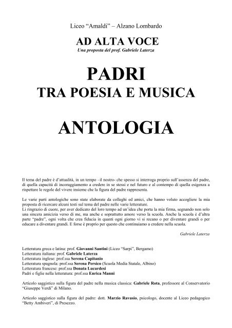 Unora inglese, si va, agguanta la mia mano e ce ne andiamo tanto di noi si pu fare senza, e chi vuoi che noti mai la nostra assenza Ah, ragazza, tu sei bella ogni giorno di pi non farti prender dalla sonnolenza Cinteressa, no, questa conferenza che tanto il tempo passa anche sotto. Il cantautore Baglioni racconta come il padre sia stato un esempio e una guida per lui “mi tiravi per la mano sul tuo passo più costante tu un gigante e io un nano mentre davi un nome agli alberi e alle piante”. Coro oratorio Brembilla a Treia 14÷ http//wwwyoutubecom/watch?v=l6oD0Jakw.