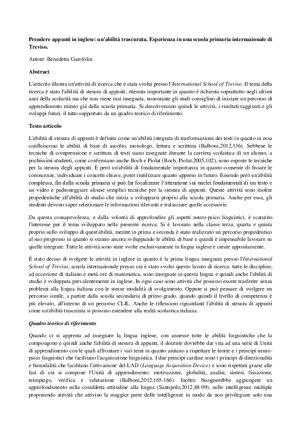 Pdf Prendere Appunti In Inglese Un Abilita Trascurata Esperienza In Una Scuola Primaria Internazionale Di Treviso Benedetta Garofolin Academia Edu