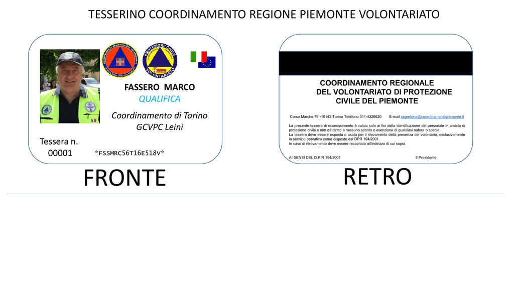 Tesserini Di Riconoscimento Comitato Coordinamento Volontari Lecco