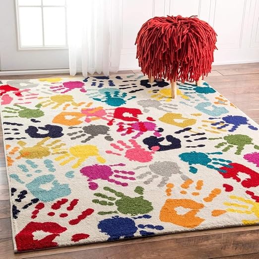 Amazon Com Alfombra De Area Abstracta Geometrica De 6 Pies Y 7 Pulgadas X 9 Pies De Fibra Sintetica De Polipropileno Suave Duradera Multicolor Azul Gris Verde Rojo Decoracion Para Habitacion De Ninos