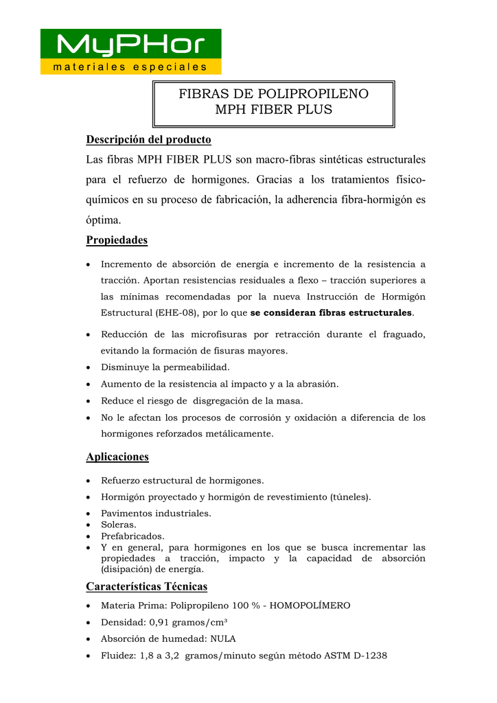 Fibras De Polipropileno Mph Fiber Plus Manualzz