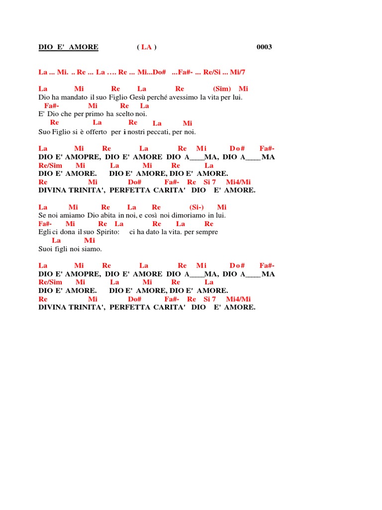Lyrics for Dio è amore by Rinnovamento nello Spirito Santo Dio ha mandato il suo Figlio Gesù Perché avessimo la vita per lui E' Dio che per primo ha. Provided to YouTube by Believe SASDio è amore · Marco FrisinaFinding Joy℗ Heristal EntertainmentReleased on Music Publisher DRComposer Marco Fr. L’amore è superiore, l’amore è più potente, perché è Dio Dio è amore Ci sono di esempio i martiri cristiani – i nostri martiri, anche dei nostri tempi, che sono di più di quelli degli inizi – i.