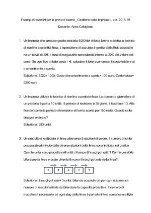 Esercitazione Esame Economia E Gestione Delle Imprese Segre Docsity