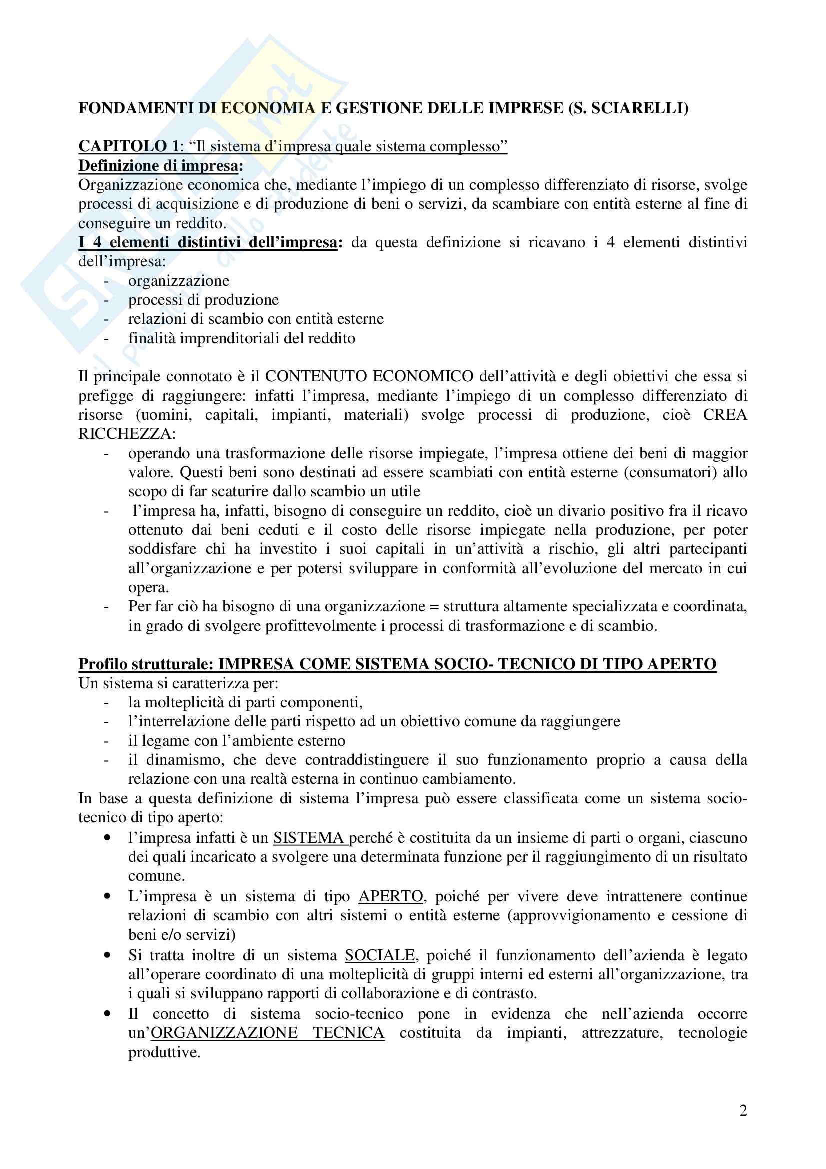 Elementi Di Economia E Gestione Delle Imprese Sciarelli Docsity