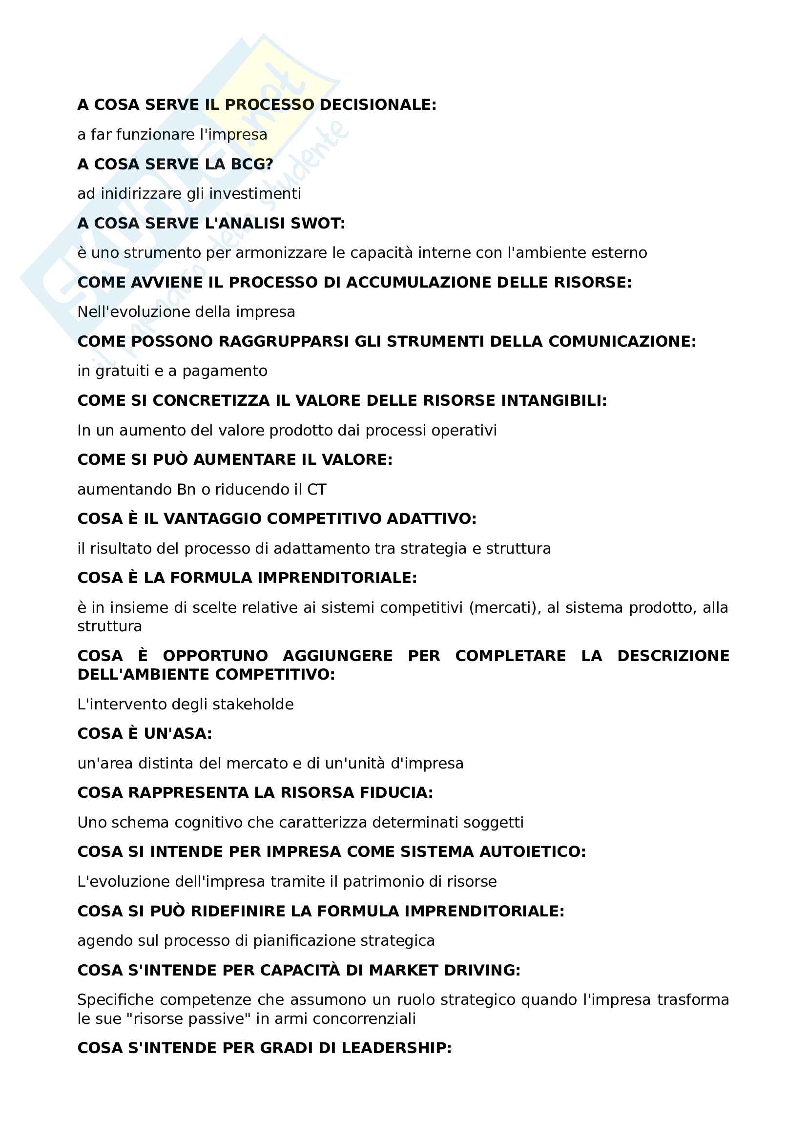 Test Quiz Economia E Gestione Delle Imprese Docsity