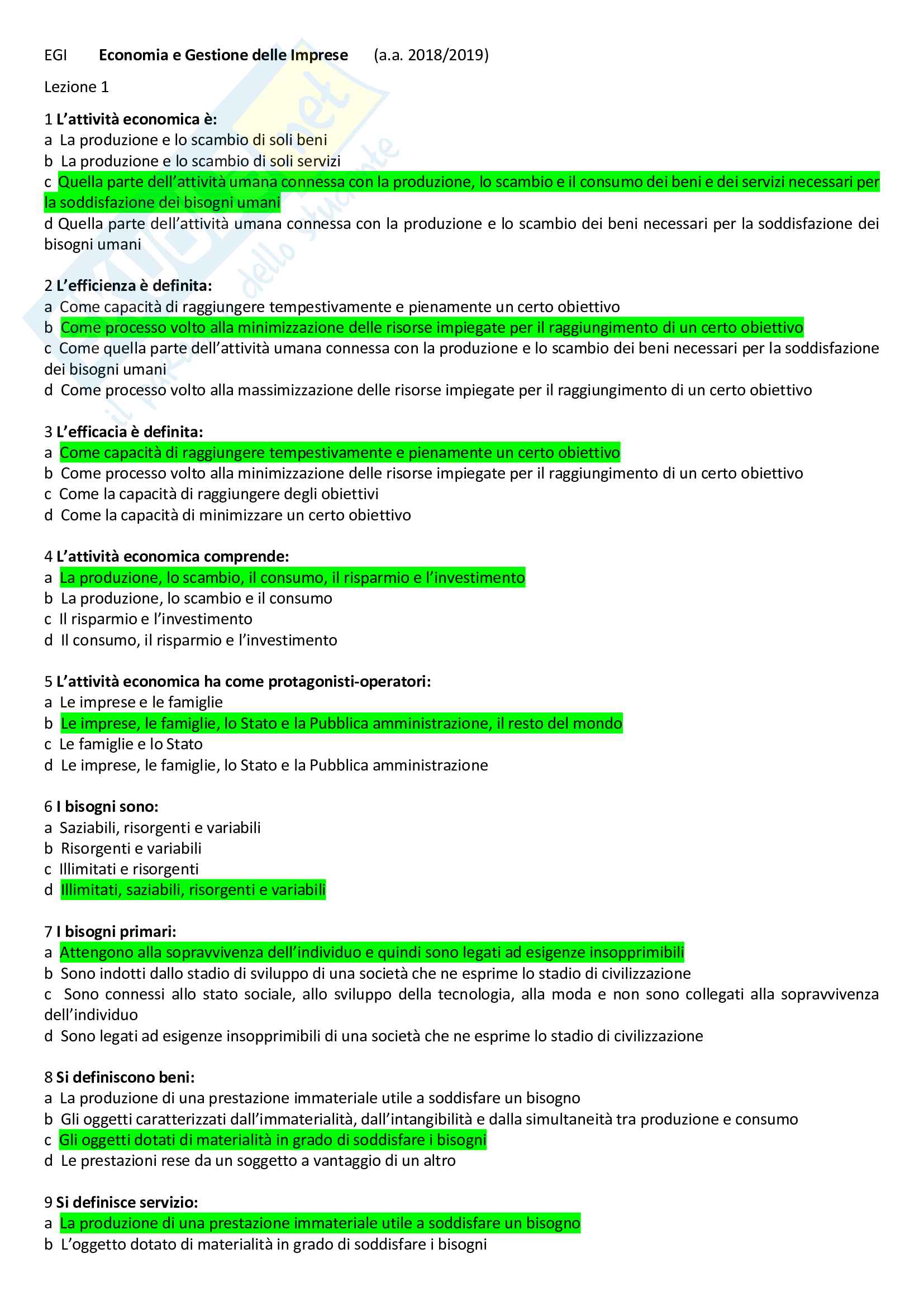 Test Economia E Gestione Delle Imprese Unipegaso Docsity