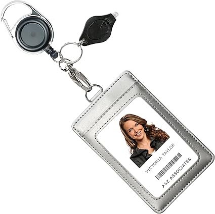 Portafoglio Porta Badge Identificativo In Vera Pelle Con Moschettone A Scomparsa Portachiavi E Clip In Metallo 3 Tasche Per Schede Contiene Piu Carte E Chiavi Verticale Argento Amazon It Cancelleria E Prodotti Per