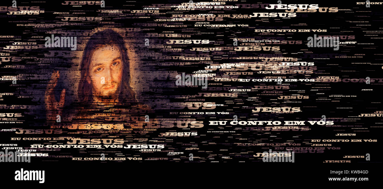 Testo Ritratto Di Gesu Misericordioso Immagine Con La Portoghese Traduzioni Di Gesu E Confido In Te Foto Stock Alamy