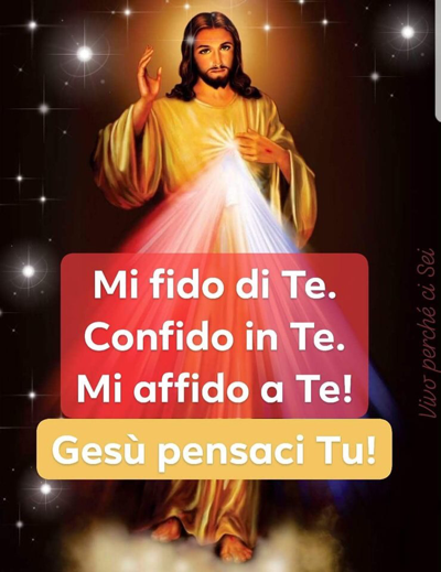 LA CORONCINA ALLA DIVINA MISERICORDIA O mio Gesù, anche quando verrò da Te e Tu mi colmerai di Te stesso e sarà per me la pienezza della felicità, non dimenticherò il genere umano Desidero sollevare un lembo di cielo, affinché la terra non dubiti della Misericordia di Dio Il mio riposo sta nel divulgare la. Religious Postcard Card Vintage Jesus Light Prisms Beauriful Item Information Condition Used Price US $1157 Gesu Confido In Te!. Tu sei sempre con me, mi sostieni e mi ami Gesù, confido in Te Il Tuo amore è più profondo dei miei peccati e delle mie cadute, e mi trasforma Gesù, confido in Te Non sapere ciò che mi aspetta domani è un invito a fare affidamento su di Te Gesù, confido in Te Tu sei con me nella mia sofferenza Gesù, confido in Te.