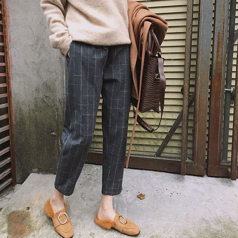 Acquista Pantalone Scozzese Da Donna Stile Inglese Dosoma Pantaloni Dritti Grigi Pantaloni Elastici Da Donna Allentati A Vita Corta A 15 92 Dal My01 Dhgate Com