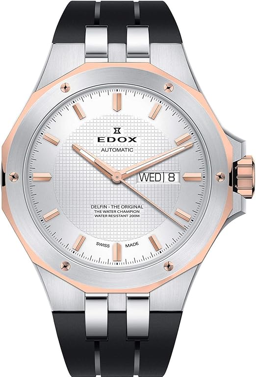 Amazon Com Edox Men S Delfin The Original 43mm Black Rubber Band Steel Case Automatic Analog Watch 005 357rca Air Watches