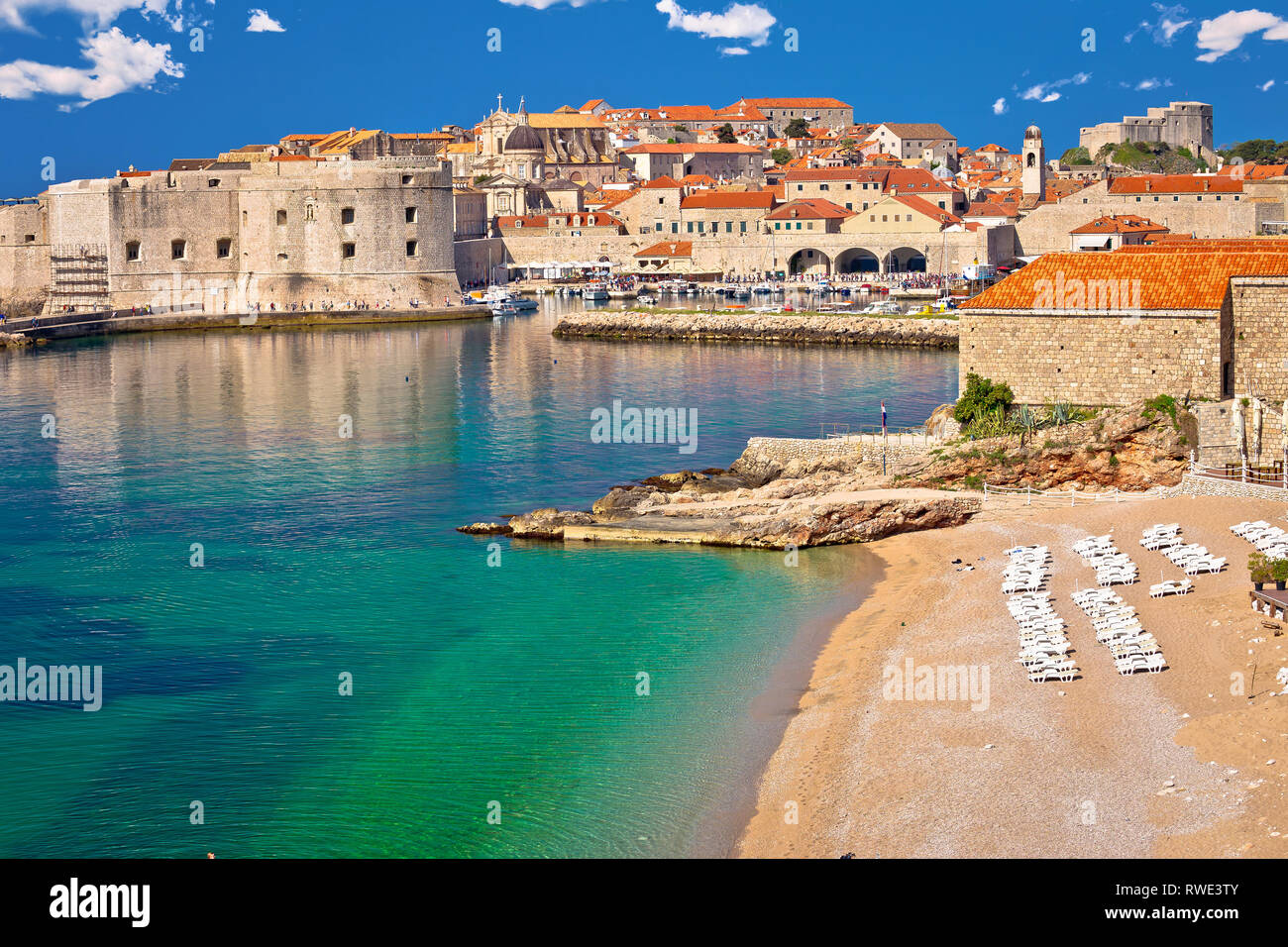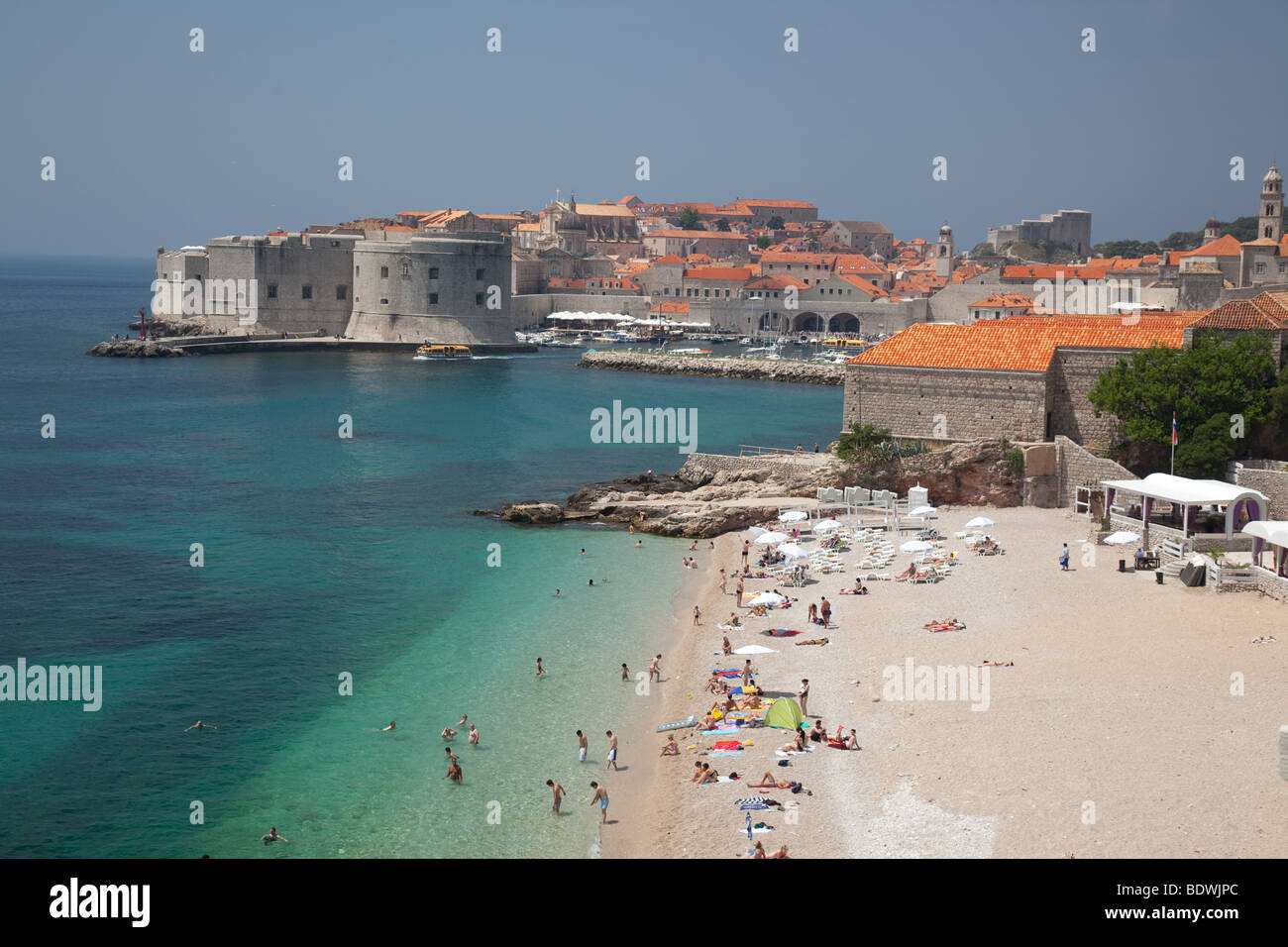 La Citta Vecchia Di Dubrovnik Con Spiaggia Di Banje In Primo Piano Foto Stock Alamy