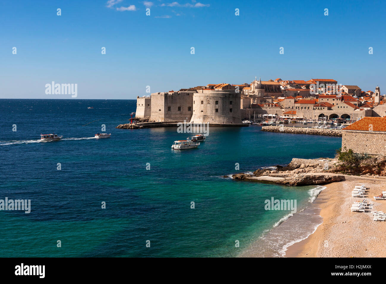 Banje Beach Old Port And Dubrovnik Old Town Dubrovnik Dalmatian Stock Photo Alamy