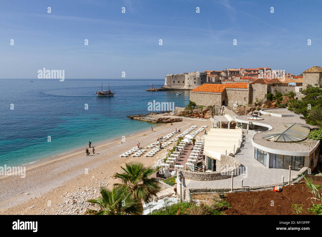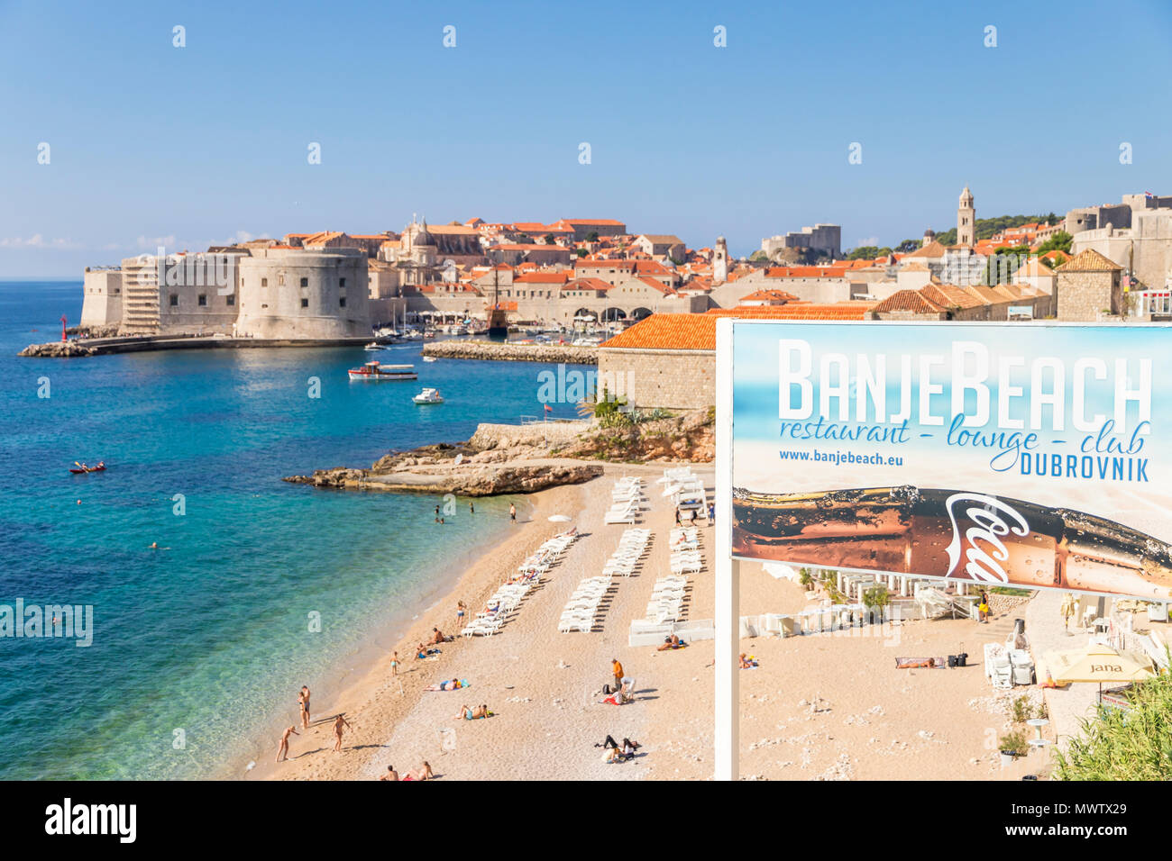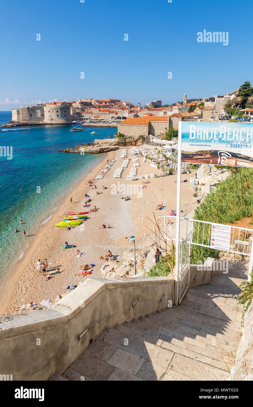 Vista Sulla Spiaggia Di Banje E La Citta Vecchia Di Dubrovnik In Background Dubrovnik Croazia Europa Foto Stock Alamy