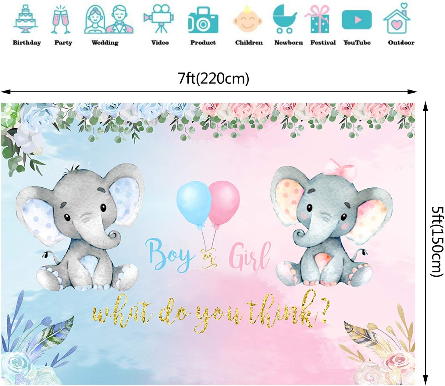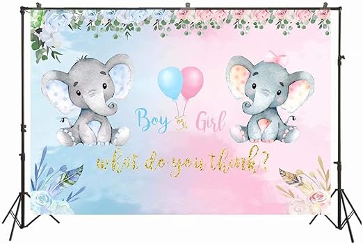2 X 150 Cm Elefante Genere Rivela Partito Fondale Rosa Blu Ragazzo O Ragazza Baby Shower Fiori Fotografia Sfondo Lui O Lei Genere Sorpresa Floreale Torta Decorazioni Tavolo Photo Booth Banner W 29