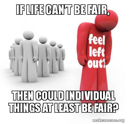If Life Can T Be Fair Then Could Individual Things At Least Be Fair Fair Life Nope Make A Meme
