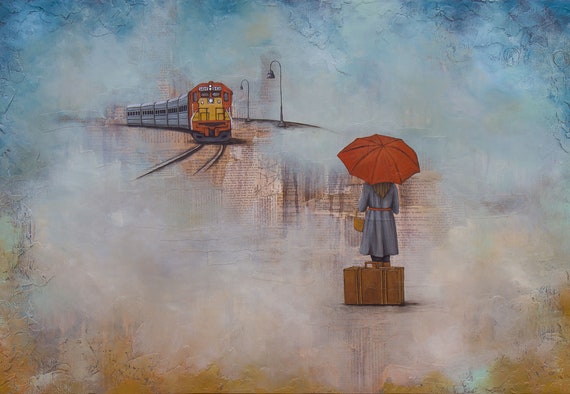 Rain Art Train Art Titled Six O Clock Train Limited Etsy