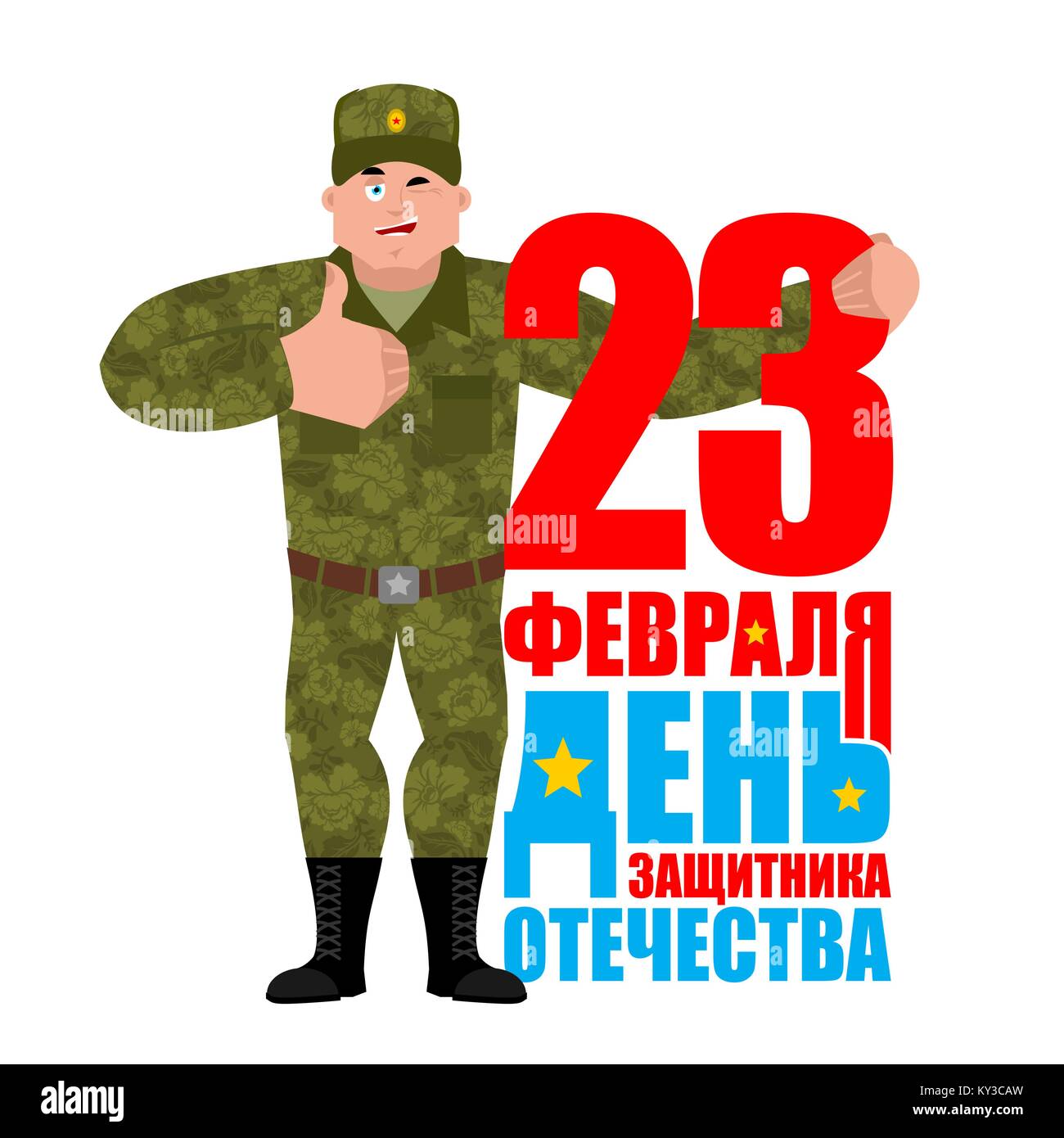 23 Febbraio Difensore Della Patria Giorno Soldato Russo Thumbs Up E Winks Warrior Merry Gioiosa Militari In Russia Testo Di Traduzione Russo Febr Immagine E Vettoriale Alamy
