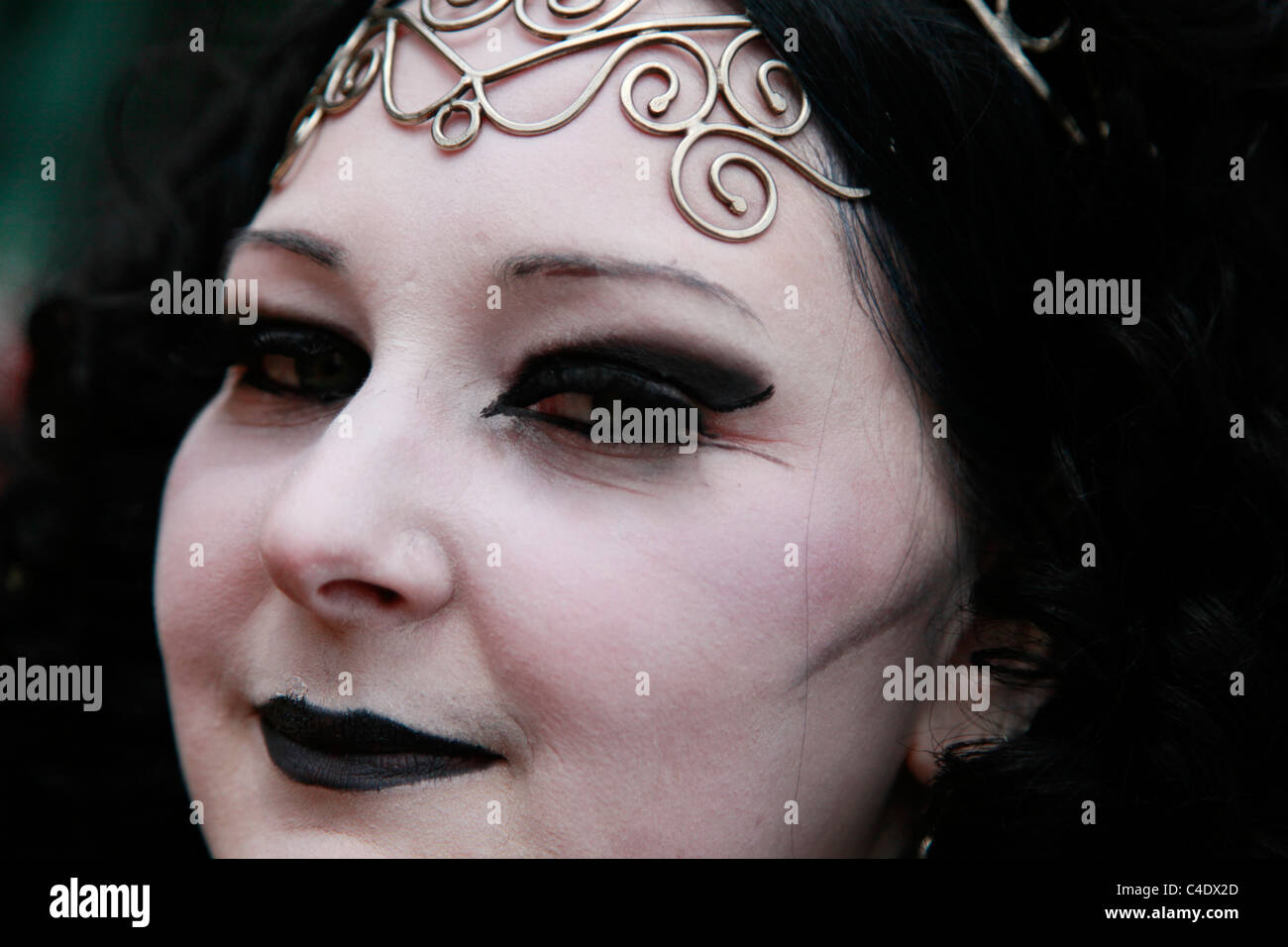 Il Partecipante Con Il Trucco Pesante All Annuale Wave Gothic Treffen Festival Per Dark Musica E Arti Nella Citta Di Lipsia In Germania Foto Stock Alamy
