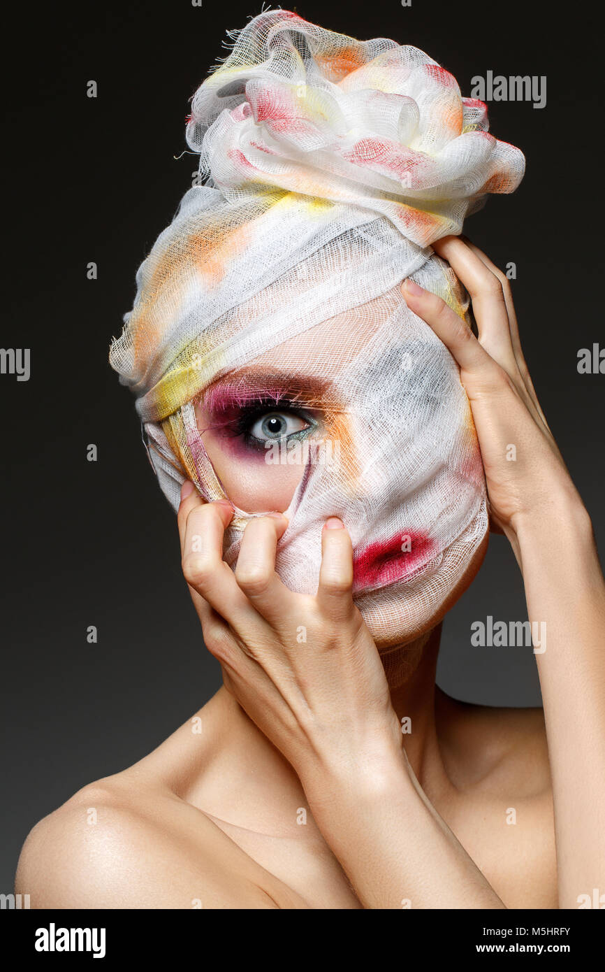 Ragazza Con Trucco Pesante E La Benda Sulla Testa Foto Stock Alamy