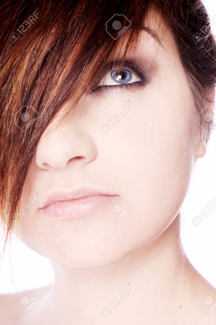 Immagini Stock Primo Piano Di Una Bella Giovane Donna Con Trucco Pesante Guardando La Telecamera Image