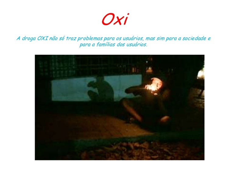 Cuando la persona continúa consumiendo la droga a pesar de la variedad de consecuencias negativas que ello le acarrea, se considera adicción Para una persona adicta, encontrar y consumir la droga puede empezar a convertirse en lo más importante de su vida, más importante que la familia, los amigos, la escuela, los deportes o la salud. Artigo sobre a droga chamada de Oxi, quais são as suas características, como é a sua fabricação, efeitos no organismo, entre outras informações. Oxi nueva droga asesina EL OXI, UN SUBPRODUCTO DE LA COCAÍNA, MATA MÁS QUE EL CRACK Y ES CUATRO VECES MÁS BARATO Una nueva droga, el OXI está creando pánico en el vecino país Brasil.