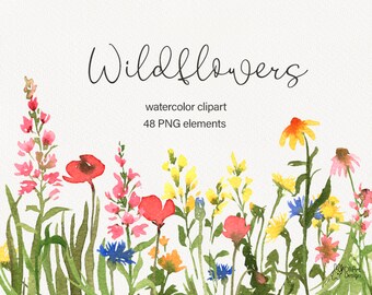 Wildflowers Clipart Watercolor Print Digital Printing Etsy