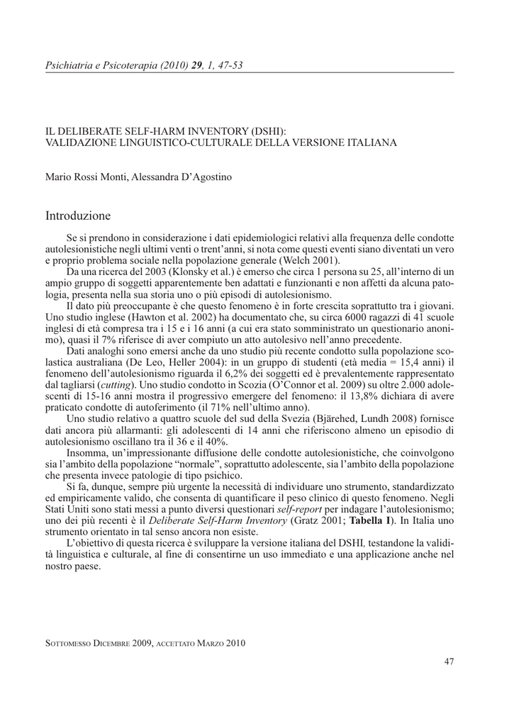 Deliberate Self Harm Inventory