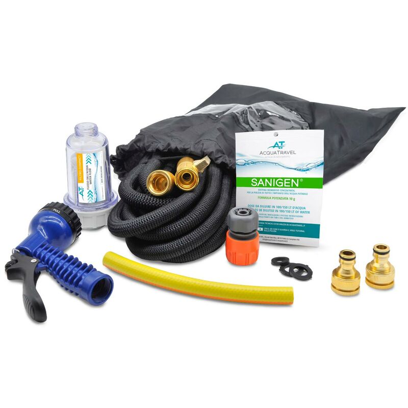 Kit Carico Acqua Camper Con Filtro Sedimenti Tubo Pistola Canna Sanificante 1111