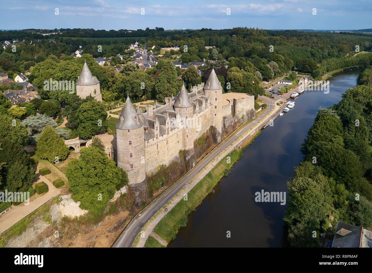 Francia Morbihan Fermata Sulla Via Di San Giacomo Josselin Borgo Medievale Josselin Castello In Fiamme In Stile Gotico Sul Fiume Oust Banche Vista Aerea Foto Stock Alamy