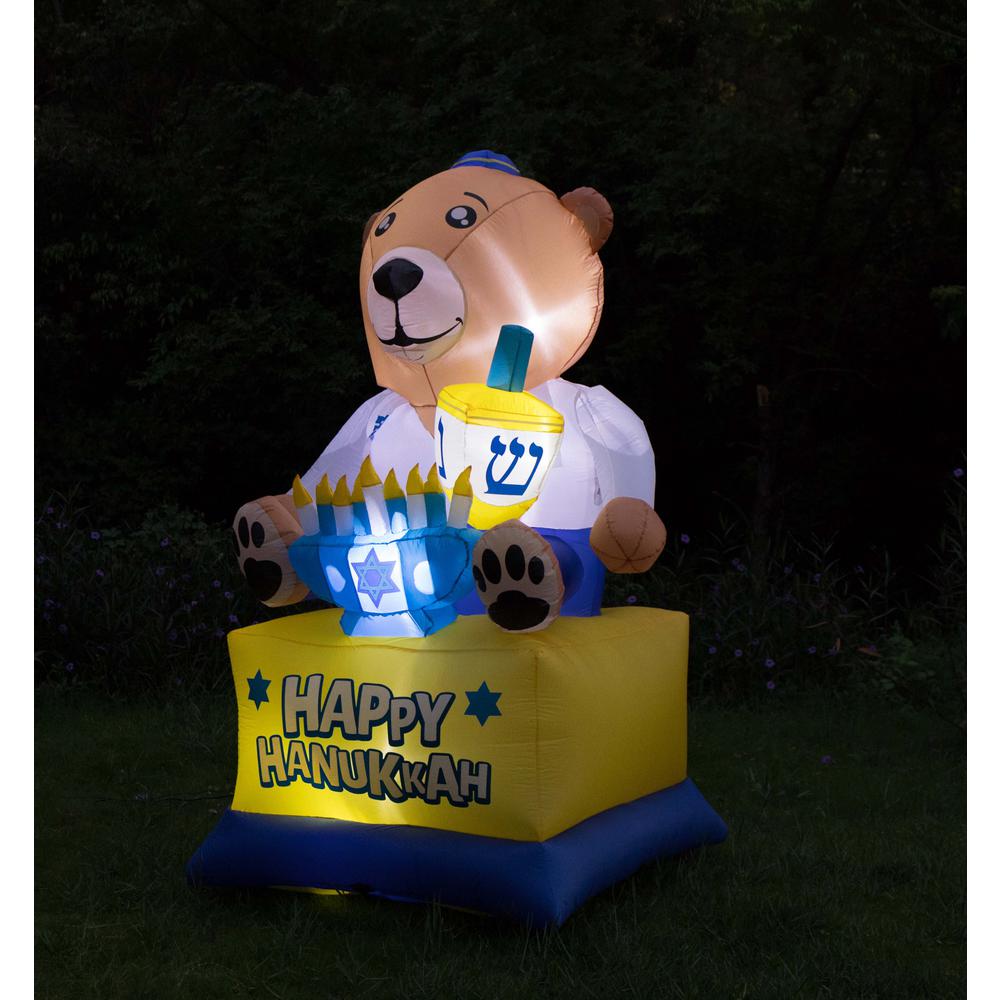 This menorah is perfect to decorate your home, synagogue, yard, or school Comes with a sandbag, plastic stakes, ropes, 5 LED bulbs to illuminate, and a powerful external fan motor to ensure fast and easy blowup. Brighten up your celebrations with this big inflatable Hanukkah Bear with builtin lights!. Give us a call at 18MENORAH () we would love to talk to you!.