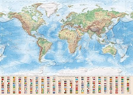 J Bauer Karten Mappa Fisica Del Mondo 140x100 Cm Con Bandiere In Inglese Edizione 16 Amazon It Casa E Cucina