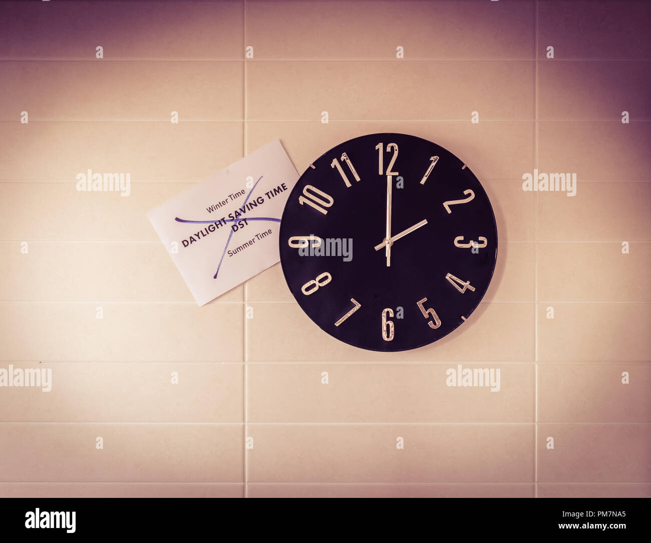Grande Orologio Nero Su Bianco Parete Cambiamento Di Orario Dst Sondaggio Della Unione Europea Sul Cambiamento Di Orario Banner In Inglese Foto Stock Alamy