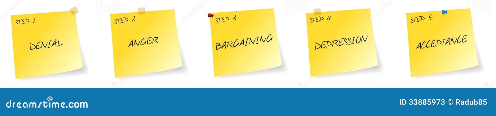 Cinque Fasi Del Dolore Negazione Ira Contrattazione Depressione Accettazione Concetto Bozza Foto Stock Alamy