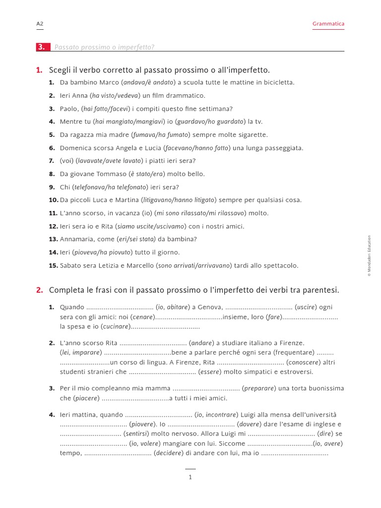 Volendo essere molto esaurienti, la relazione corre il rischio, certamente, di essere imperfetto. Quindi ora vediamo qualche risorsa che puoi utilizzare per esercitarti sul verbo essere inglese (non saltare questa parte, la teoria lascia il tempo che trova senza i dovuti esercizi). – the imperfetto tense refers to regular events of which we know neither the beginning nor the end Let’s see more in detail these two tenses The passato prossimo tense is used to indicate an action that’s occurred, one or more times, in a certain moment in the past (yesterday, two months ago, last year, in that moment, ecc).