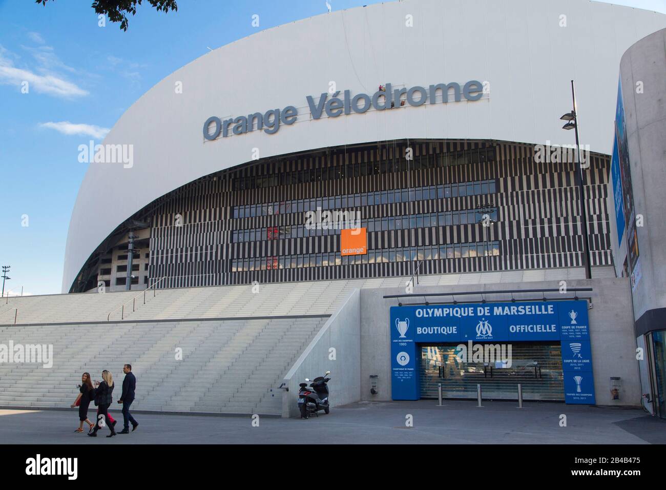 France Bouches Du Rhone Marseille Orange Velodrome Stadium Installation Of The Logo Work At Height Naming Stock Photo Alamy